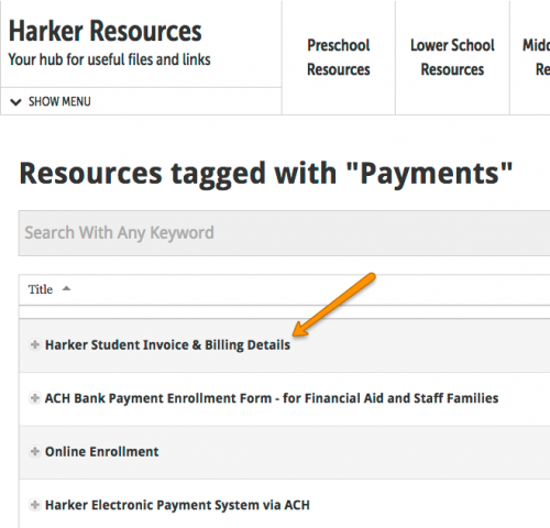 This will take you to our Resources tool, where you should select “Harker Student Invoice & Billing Details.”